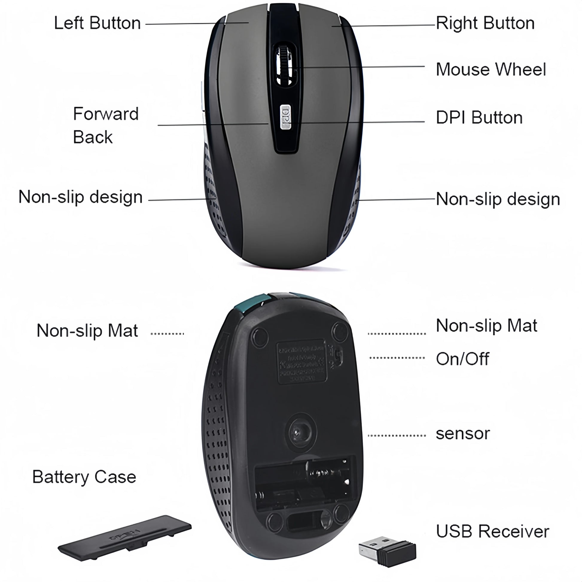 Wireless Mouse 2.4G Silent Mouse USB Portable Office Mouse Mobile Optical Mouse Adjustable 1600DPI Mouse for Notebook PC Laptop